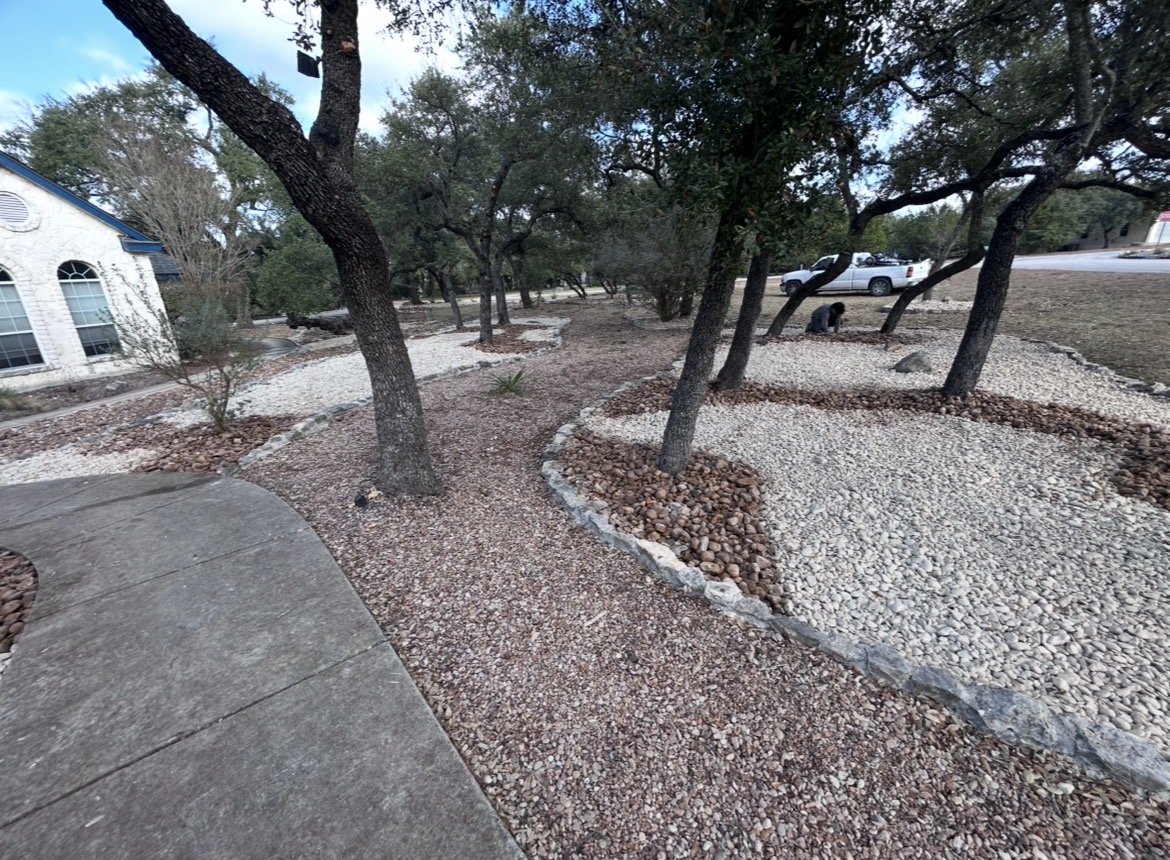 Rock landscaping with stone borders